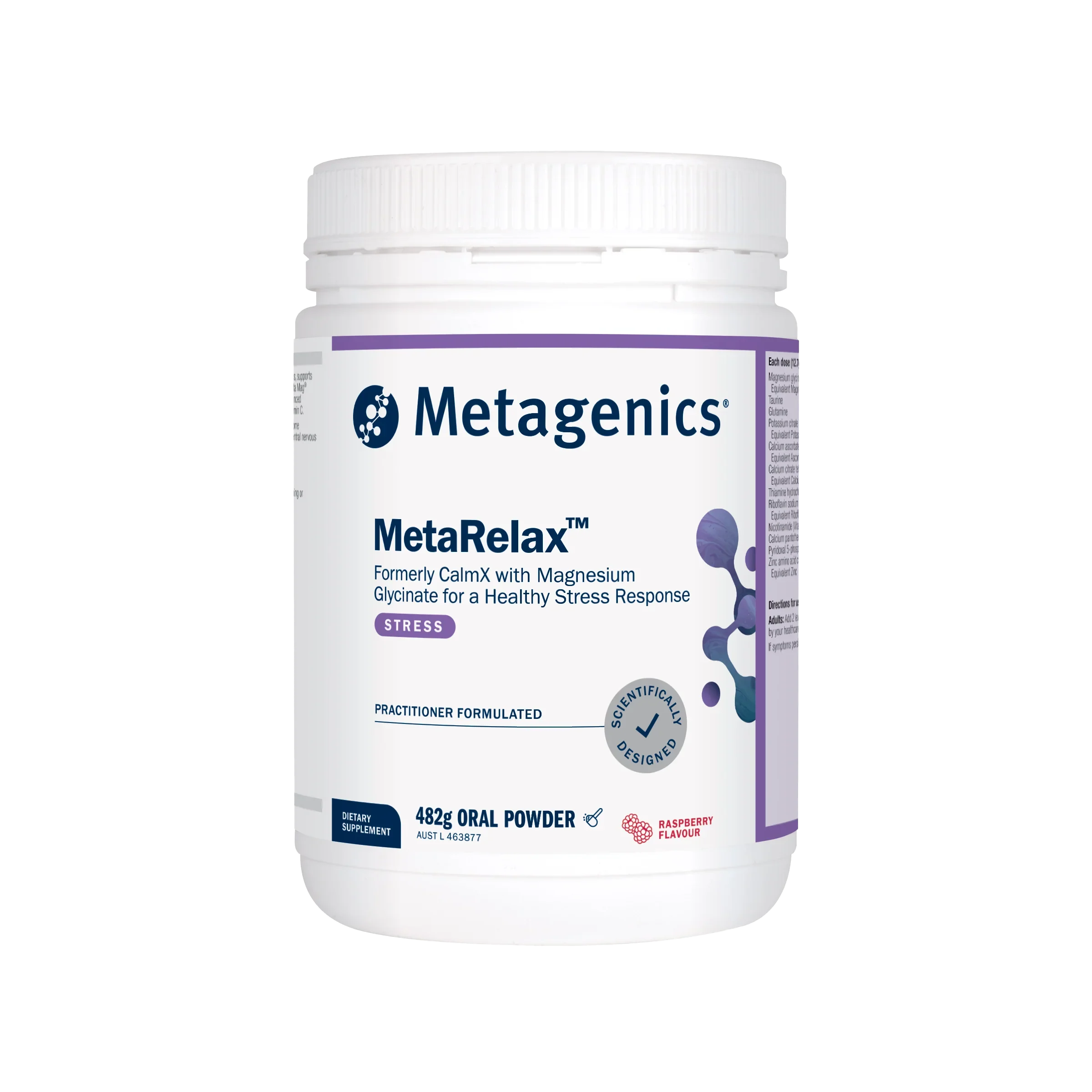 MetaRelax™ helps reduce stress symptoms, supports the body’s ability to handle stress, and keeps hormones balanced. It contains a special form of magnesium (Meta Mag®) that the body absorbs easily, along with taurine, potassium, vitamin B6, and vitamin C to enhance its benefits. It also helps the nervous system by supporting the production of neurotransmitters—natural chemicals in the brain that help regulate mood and stress levels.
